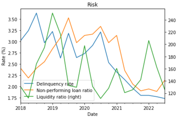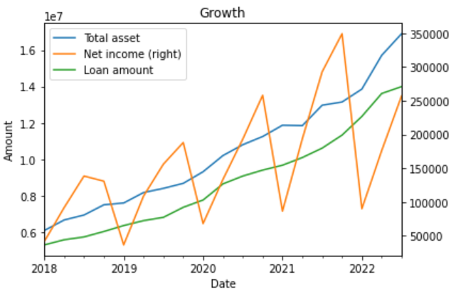 저축은행이 계속 성장을 하고 있고, 안정적으로 운영되고 있는지 예측을 하기 위해, 추가적인 재무 정보를 구해왔으며, 회사의 당기순이익과 대출금액의 성장, 연체율과 고정이하여신비율의 안정적인 관리를 확인해보았다.